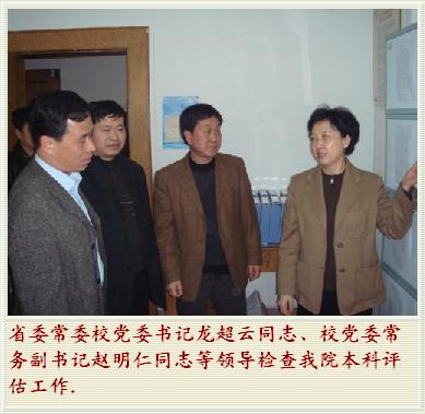 省委常委校党委书记龙超云、校党委副书记赵明仁等领导检查我院本科评估工作