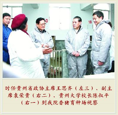 时任贵州省政协主席王思齐等同志在我校校长陈书平陪同下到我院香猪育种场视察