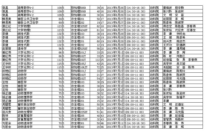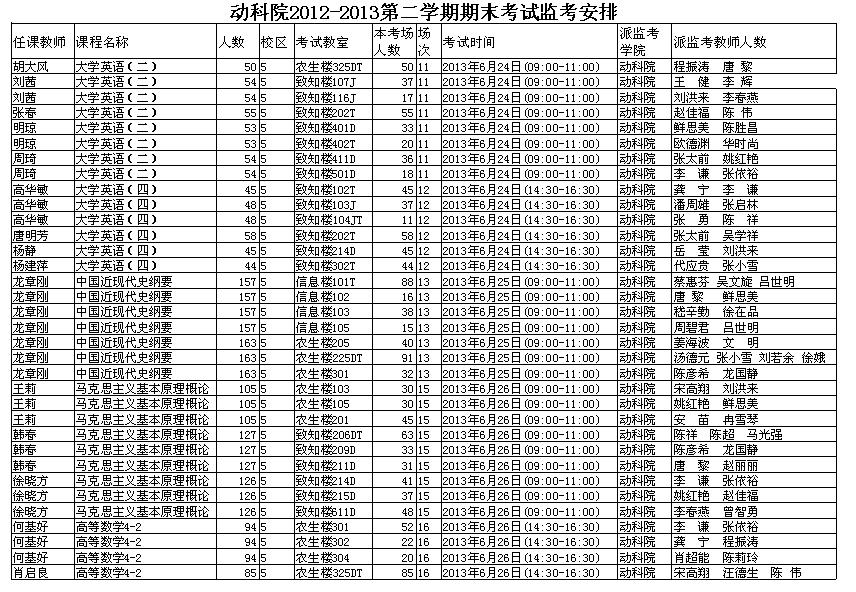 【通知】动科院2012-2013第二学期期末考试监考安排