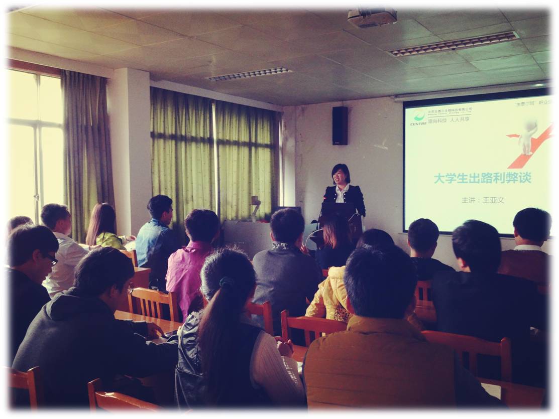 2015年4月24日13:00-14:10,在动科楼六楼会议室,生泰尔集团的王亚文经理为动物科学学院的同学们带来了培训课程《大学生出路利弊谈》,生泰尔班的全体同学们都准时到场参加了培训。