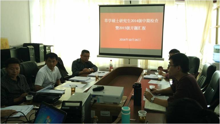 根据学校及学院相关要求,我院草学一级硕士点于10月26日在三教601召开硕士研究生2014级中期检查及2015级开题工作。
