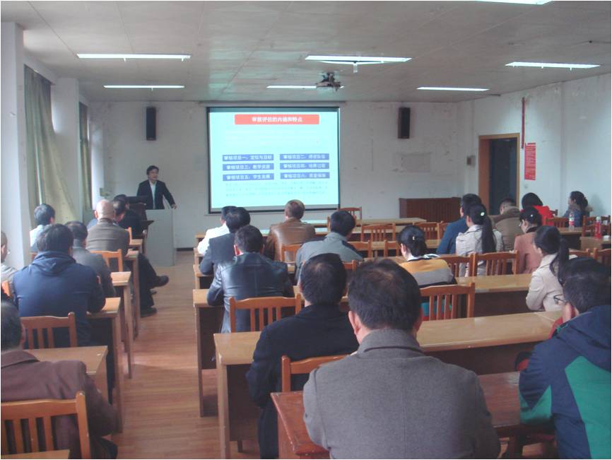 11月4日下午,校领导向淑文副校长到我院开展本科教学审核评估迎评工作辅导讲座。院党委书记任登鸿、院长陈祥盛以及全院教职工参加讲座。讲座由院党委书记任登鸿主持。 首先,向淑文副校长以“怎么说的”、“如何做的”、“效果如何”和“如何改进”四个方面深入浅出地阐述了审核评估与水平评估的本质区别。他还强调,审核评估是评估专家多渠道(如状态数据、网上等)对我校本科教学进行了解后,带着问题来与我们答辩和谈判。因此,我们要通过自查找出问题并提出解决问题的对策,真正做到以评促建。另外,他还讲解了本科评估相关支撑材料的准备方法。 其次,向淑文副校长介绍了专家进校的主要工作流程、以评促建和专家进校主要工作等相关事宜,总结在以前评估工作中存在的一些问题,面对现有的“硬伤”和“盲区”如何应对。 最后,向淑文副校长着重强调要做到“三个务必”:一是务必要拥有现代教育理念;二是务必要深入了解学校办学定位和整个教学工作;三是务必牢固树立人才培养是学校的核心职能这一根本,始终坚守“两条底线”:不留硬伤,消除盲区,全院师生要全力以赴迎接专家组的审核评估工作。