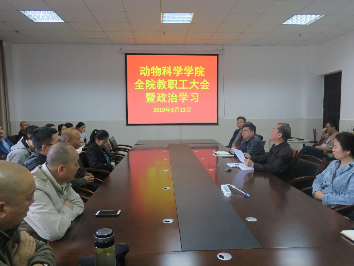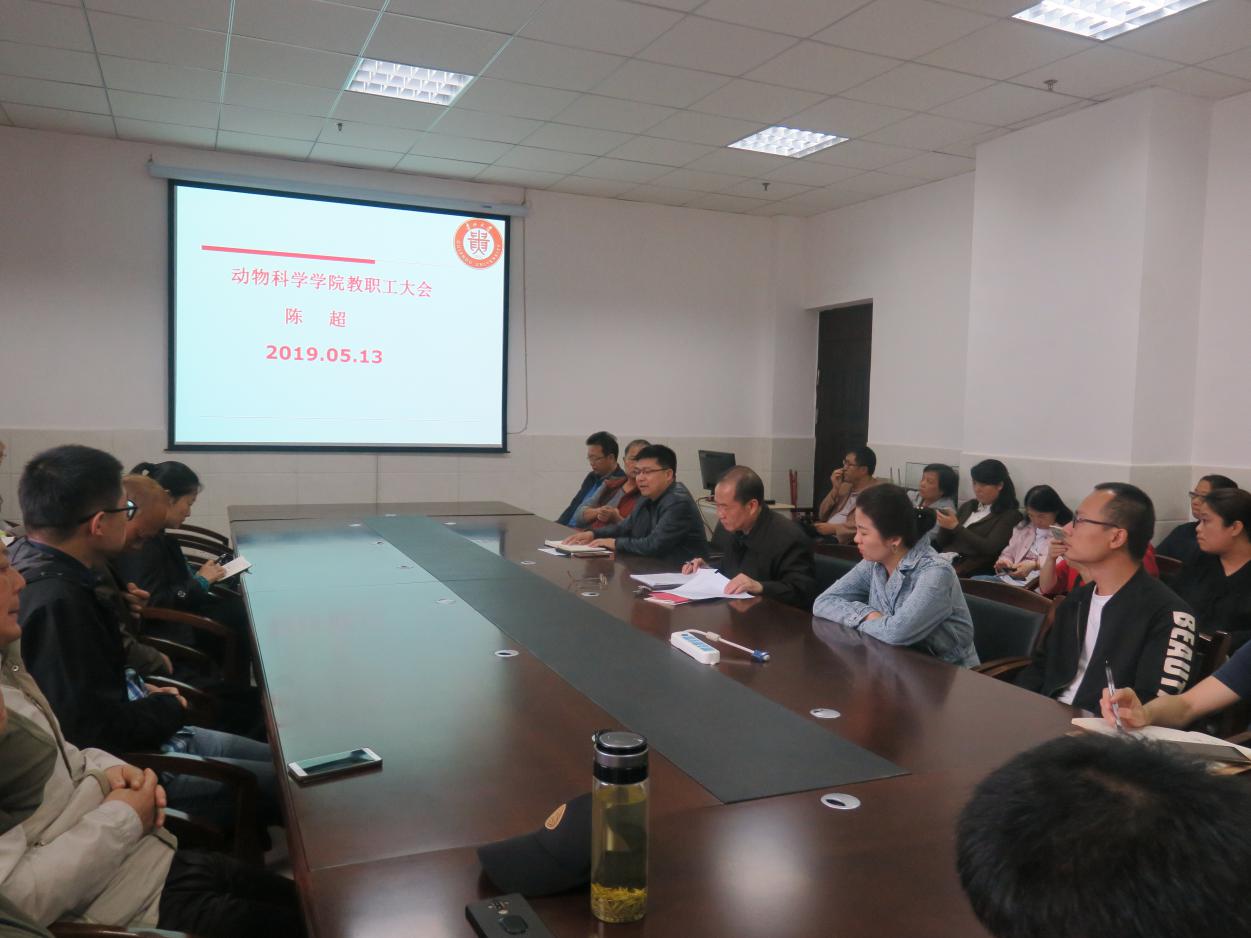 5月13日下午3点,动物科学学院在崇学楼206会议室召开了全体教职工大会。院领 导、全体教职工参加了本次会议。会议由院党委书记谭诗信主持。
