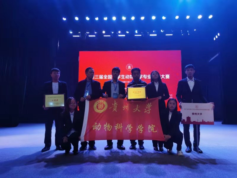 2019年11月1-3日,全国大学生第三届动物科学专业技能大赛在湖北武汉华中农业大学举行,我院动物科学系师生代表贵州大学参赛,获团体二等奖、单项二等奖、优秀领队奖、“优秀导师奖”荣誉各1项。
