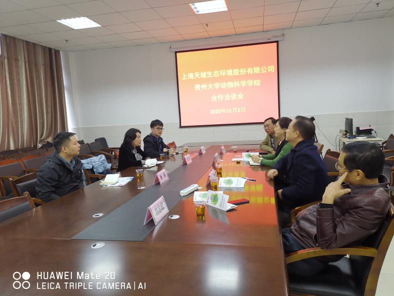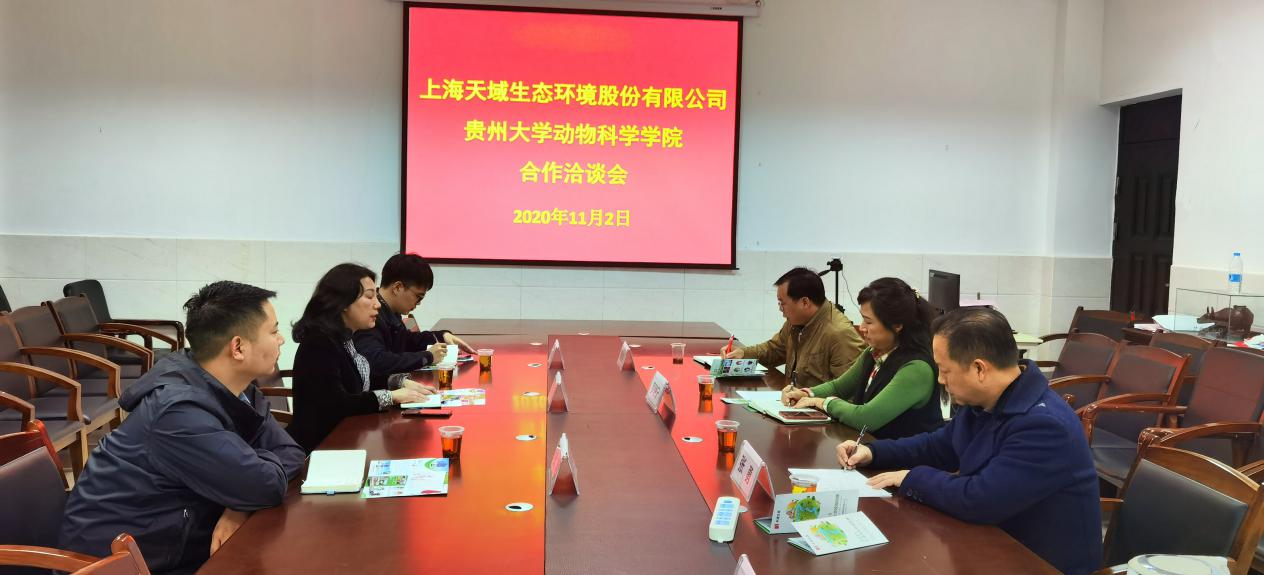 2020年11月2日上午,上海天域生态环境股份有限公司到动物科学学院开展校企合作洽谈交流。交流会议在崇学楼206会议室召开,学院党委书记罗聃宁、动物科学系系主任张依裕教授、燕志宏教授、张勇副教授参加洽谈会,会议由张勇主持。