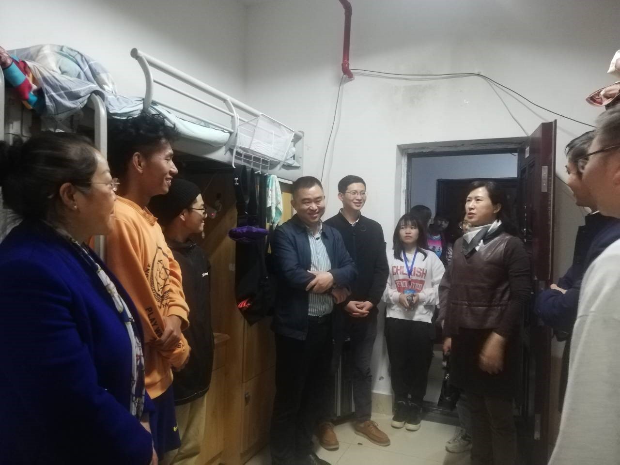 为进一步加强与学生交流,排查学生寝室安全隐患,提高学生安全意识,2020年11月18日晚,我院党委书记罗聃宁、党委副书记李秋蓉带领学院全体学生辅导员与班主任走访了全体本科生寝室,并对寝室开展了安全隐患排查。