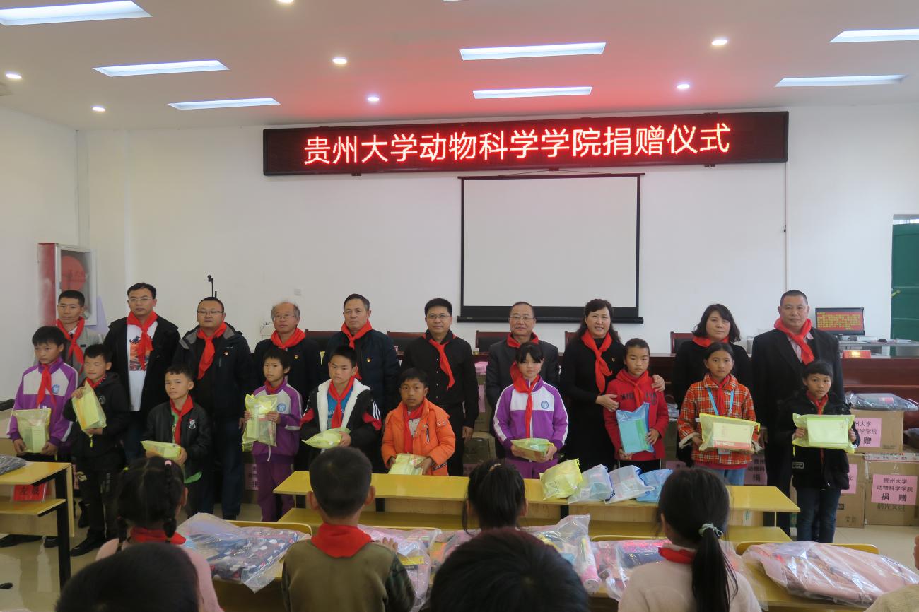 贞丰县是贵州大学的扶贫县,在严冬到来之际,动物科学院机关党支部代表全院师生党员前往贞丰县中学和者相镇纳窝学校送上700份“温暖爱心包”,以绵薄之力表达学院全体党员师生对贞丰县贫困中、小学生的关怀。“温暖爱心包”有书包、保温杯、文具盒、文具套装、水彩笔等学习用品,捐赠物资共计4万余元。