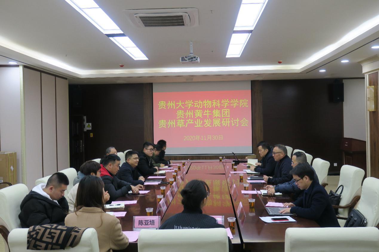 2020年11月30日万象城平台与贵州黄牛集团在贵州大学西校区崇学楼开展贵州草产业发展研讨会。贵州黄牛集团董事长刘卫东、副董事长闫茂林、董事长助理陈吉安、规划投资部副部长曹坚,贵大科技园草产业团队董事长陈光燕,动物科学学院院长陈超教授、系主任郝俊博士及部分教师参加研讨会,会议由陈超主持。