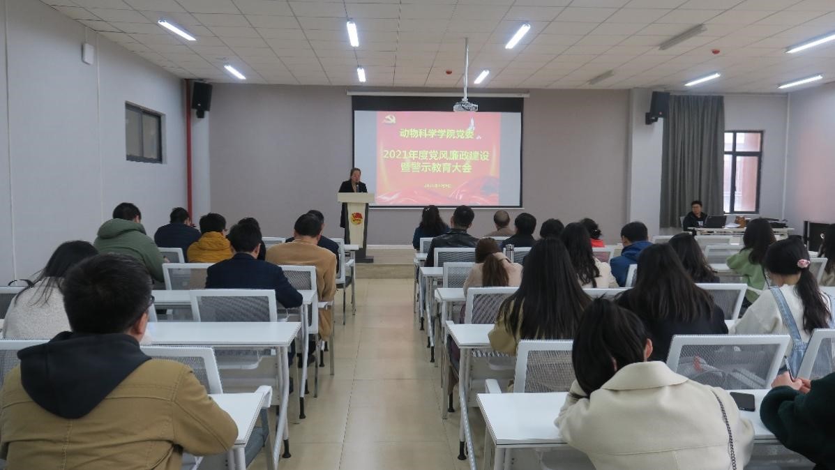 4月9日下午,动物科学学院在雅文楼217B报告厅召开党史学习教育动员会及2021年度党风廉政建设暨警示教育大会。学院党政领导、全体教师党员及学生党员代表共计100余人参加会议,会议由院党委副书记李秋蓉主持。