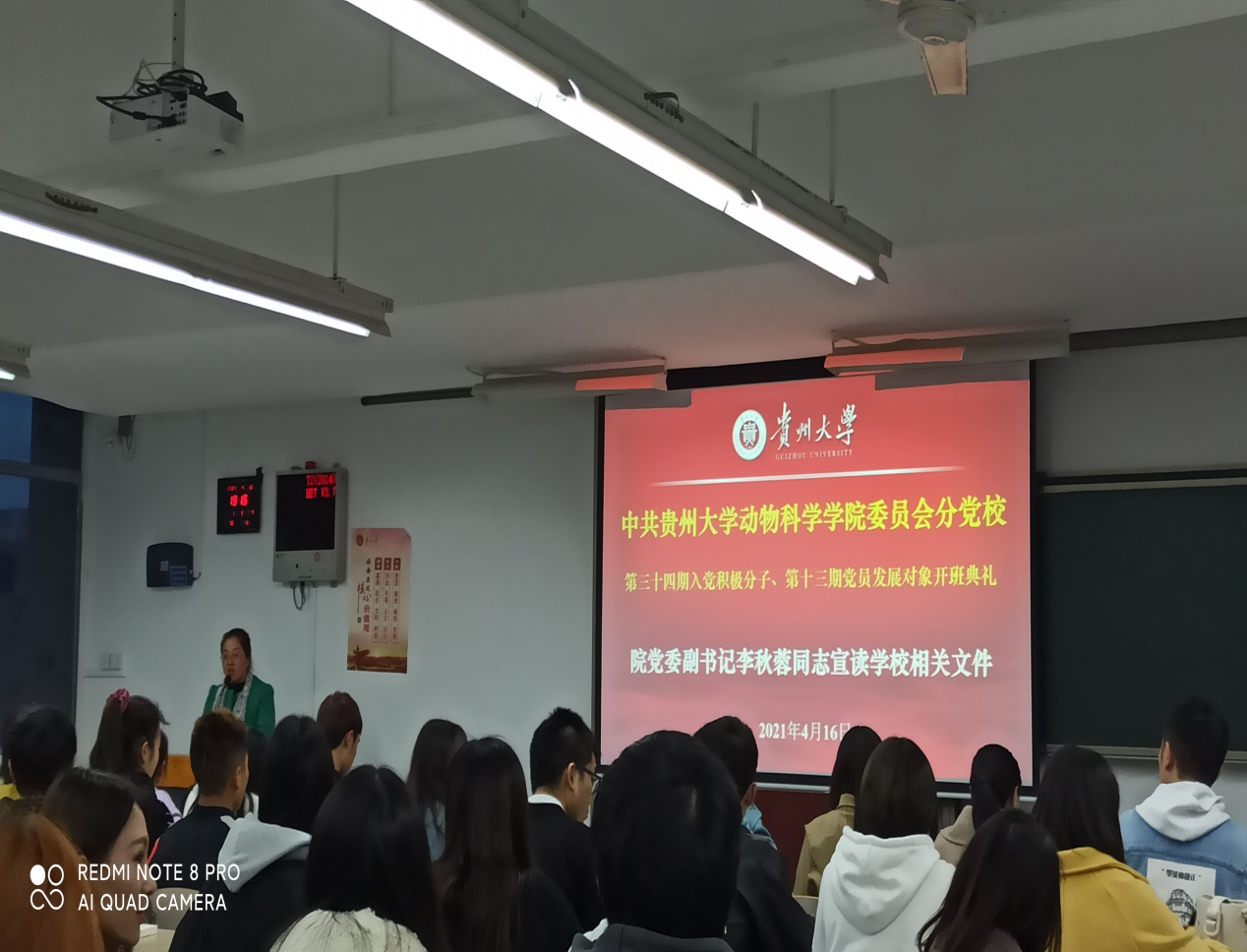 首先,全体成员起立,奏唱中华人民共和国国歌。随后,院党委副书记李秋蓉同志宣读了《中共贵州大学委员会党校关于举办贵州大学第三十四期入党积极分子培训班的通知》及《中共贵州大学委员会党校关于举办贵州大学第十三期党员发展对象培训班的通知》,强调了学习内容和相关要求。