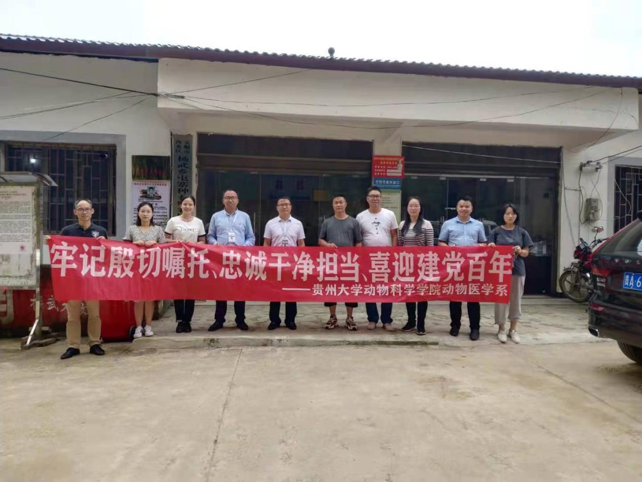 为稳步推进党史学习教育及“牢记殷切嘱托、忠诚干净担当、喜迎建党百年”专题教育,实现巩固拓展脱贫攻坚成果同乡村振兴的有效衔接,加快推进农业现代化,2021年6月22日,动物科学学院党员教师、动物医学系副主任、贵州生态养殖鸡五种常发疫病防控技术研究及示范应用项目组负责人温贵兰教授携科技特派员龚新勇、陈佳琪、安顺市农业农村局伍昌华、“博士村长”学生孙芸一行,以技术组团服务形式奔赴安顺市杨武乡屯寨村开展技术调研及帮扶。