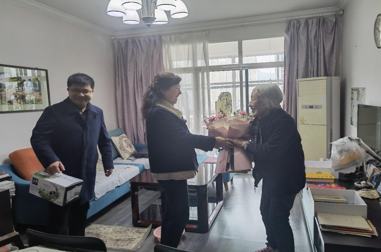 11月4日,动物科学学院党委书记罗聃宁、院长陈超及教师代表前往贵阳市城区98岁高龄的陆曼姝老师家中,进行走访慰问。