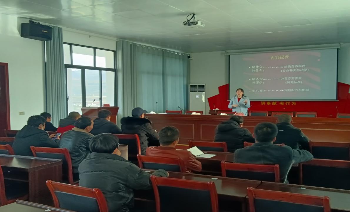 按照学校及学院党委“牢记殷切嘱托、忠诚干净担当、喜迎建党百年”专题教育实施方案要求,为深入推进“我为群众办实事”实践活动,助力乡村振兴,11月24日,受息烽县农业农村局的邀请,动物科学系教工党支部书记徐娥博士带领“博士村长”学生一行赴息烽县永靖镇为高素质农民开展“畜禽营养与饲料配制”技术培训。