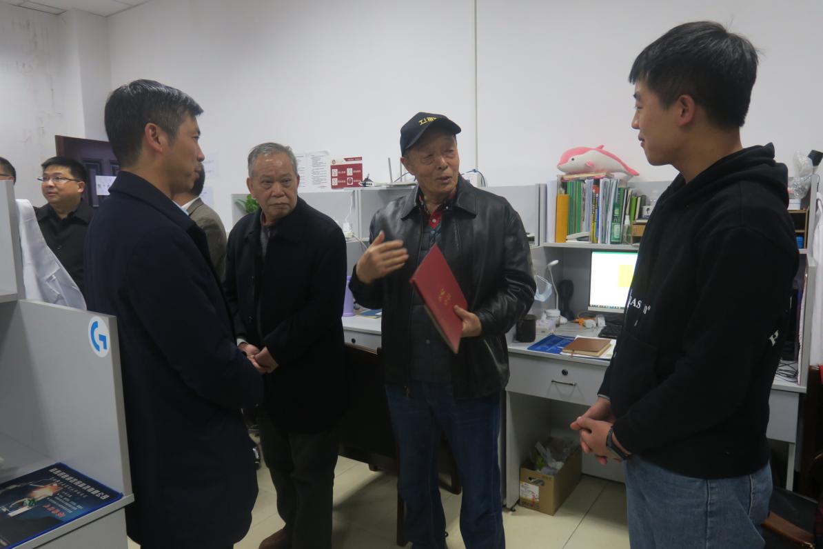随后,许乐仁先生、吴嘉甫先生一行亲切慰问了学院正在开展学术研讨及自习的学生。在研究生自习室,两位先生与同学们分享了自己的求学之路,许乐仁先生还重点分享了自己国外求学经历,并勉励同学们要扎扎实实学好基础知识,脚踏实地做科研。