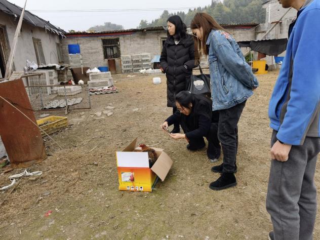 最后,项目组到当地的养鸡场基地调研了该养殖场存栏鸡数量、疫苗接种情况、长势及销售情况,并对养殖生产中存在的困难和问题进行现场指导。温贵兰现场对病鸡及弱鸡进行初步诊断,根据病鸡的临床症状及养殖户疫苗接种等情况,初步判定为鸡传染性喉气管炎。为了更准确的判定病情,项目组采集了样品带回实验室进一步进行化验,最终结果将以电话或微信形式告知养殖户,为该养殖户下一步的疾病防控做好技术保障。