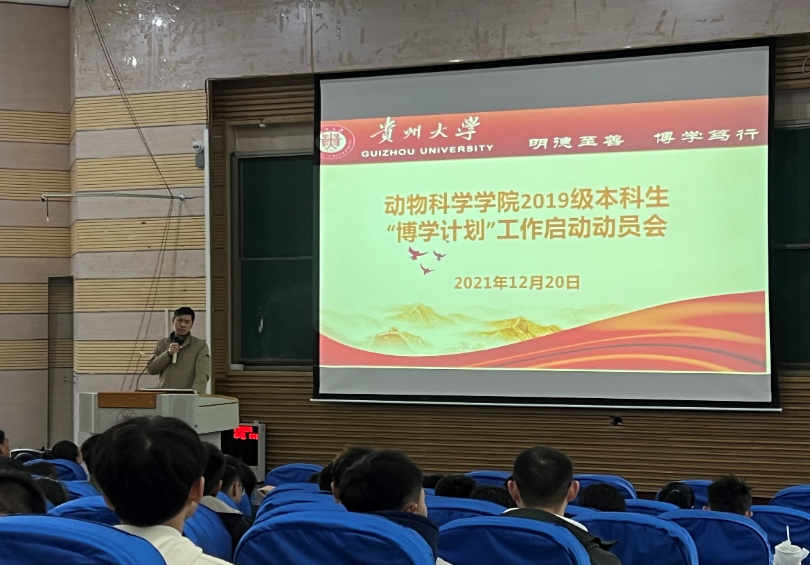 12月20日下午16:40,动物科学学院在西楼117报告厅举行2019级本科生“博学计划”工作启动动员会及征兵动员大会。动物科学学院党委书记罗聃宁、副院长陈祥出席会议,辅导员黄其河、聂江昱菡及2019级全体班主任、2019级全体本科生参加了本次会议。会议由聂江昱菡主持。