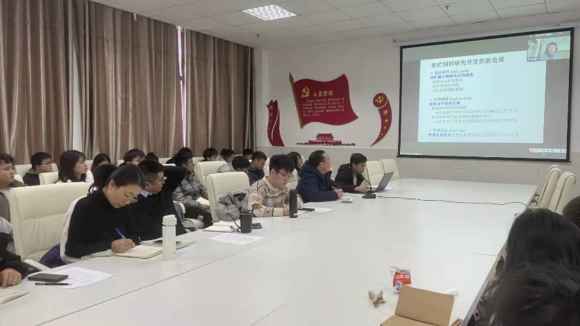 本次会议有幸邀请到享誉世界的草产品加工专家——日本畜产草地研究所高级研究员蔡义民博士为我院师生进行了以“青贮饲料研究进展与畜牧业可持续发展”为主题的专题报告。蔡老师以青贮饲料的起源、发展史和研究史为切入点,详细介绍了目前草产品加工领域的尖端研究方向,总结了目前青贮加工领域乃至限制畜牧业进一步发展的重难点。报告结束后,蔡老师与师生们在畜产品生产过程中的甲烷减排措施、微生物多样性鉴定技术、新型乳酸菌剂的筛选应用及畜牧方向研究中荟萃分析的使用等多个方面进行了长达一小时的交流和讨论,为我院在草产品加工领域的基础研究和应用研究提供了深入的指导。
