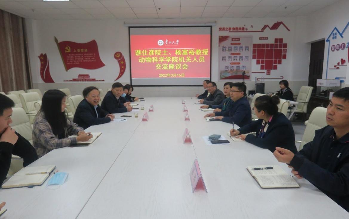 会上,院长陈超对谯仕彦和杨富裕两位教授的到来表示欢迎。他说,两位教师远离家乡,来到贵州,加入万象城平台这一举动实属不易,希望学院全体机关人员做好后勤保障,解决两位教授的后顾之忧,让他们安心为学院的发展谋篇布局。院党委书记罗聃宁从机构设置、学科建设、师资队伍、人才培养等方面向两位教授介绍了学院的基本情况。她表示,在新国发2号文件的指引下,在两位国家级人才的带领下,学院一定会在学科建设、万象城平台和人才培养等方面实现跨越式发展。