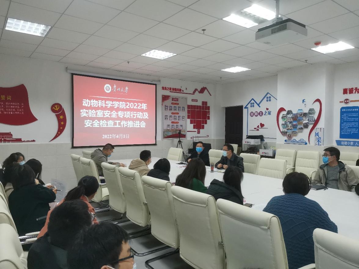 为进一步加强我院实验室安全管理,确保新冠肺炎疫情常态化防控下实验室有序运行,保障师生安全和校园稳定,4月1日上午,动物科学学院在崇学楼206会议室召开2022年实验室安全专项行动及安全检查工作推进会。学院副院长欧德渊、实验实践教学中心主任肖超能及相关人员参加会议。会议由肖超能主持。