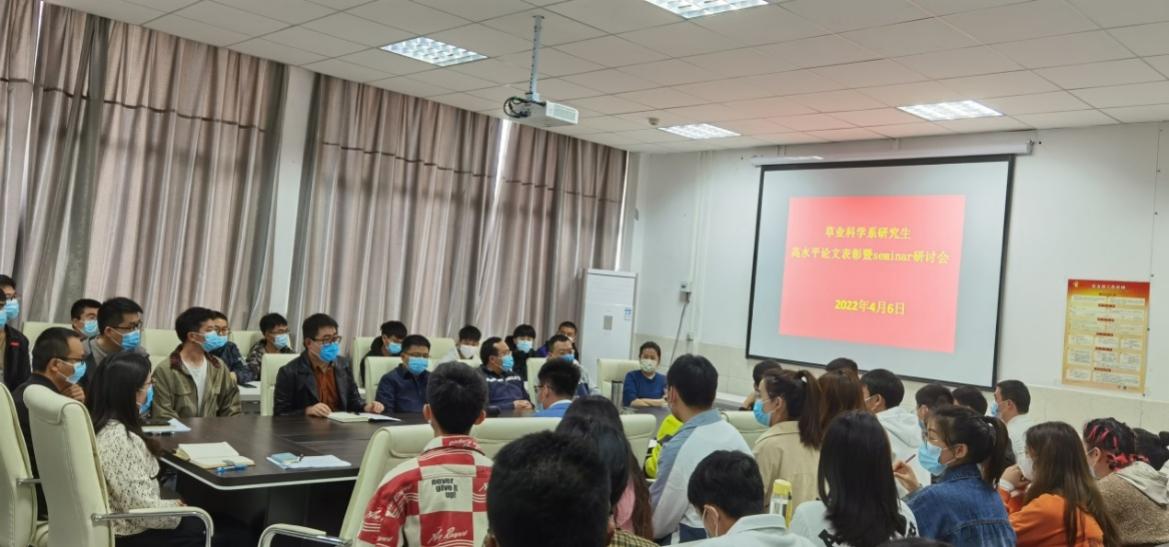 4月6日,动物科学学院草业科学系在崇学楼516召开研究生发表高水平论文表彰暨Seminar研讨会,草业科学系全体硕士生导师、在读研究生及部分本科生共70余人参加会议。