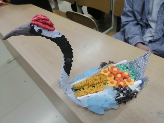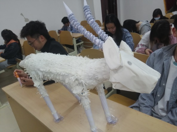 本次大赛的主旨是利用“废物”制造濒危动物模型进行比拼。比赛中,共有十二个小组进行了作品展示,对手工艺作品进行了全方位的讲解,包括作品制作材料、制作思路、制作步骤以及制作灵感等。同时介绍了作品动物原型的生活习性、生存威胁和濒危情况,呼吁大家采取行动对濒危动物进行保护。经评审,丹顶鹤组荣获本次比赛的一等奖,金丝猴组及动物世界组荣获本次比赛二等奖,树懒组及藏羚羊组荣获本次比赛三等奖。