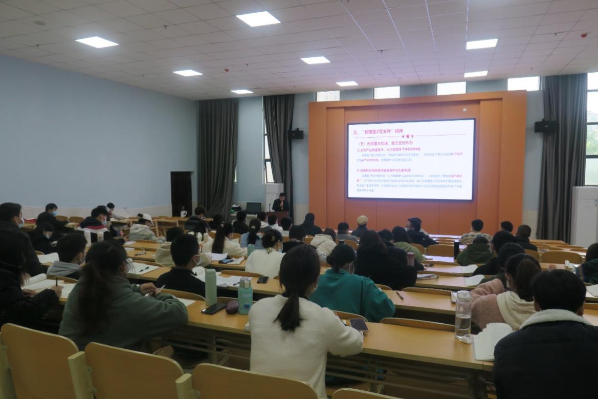 陈祥盛深入解读了新国发2号文件的指导思想、战略定位、发展目标、核心内容等主要内容。他指出,要把抢抓新国发2号文件重大机遇作为当前重要的工作之一,抓好用好国家政策“大礼包”,围绕“四新”主攻“四化”,主攻产业关键技术。结合新国发2号文件中“加快现代种业推广”“大力发展林下经济”等要求,举例说明动科院师生应如何充分发挥自身的学科专业优势,奋力主动作为,进一步落实落细新国发2号文件精神,在助力我省乡村振兴中闯新路、开新局、抢新机、出新绩。