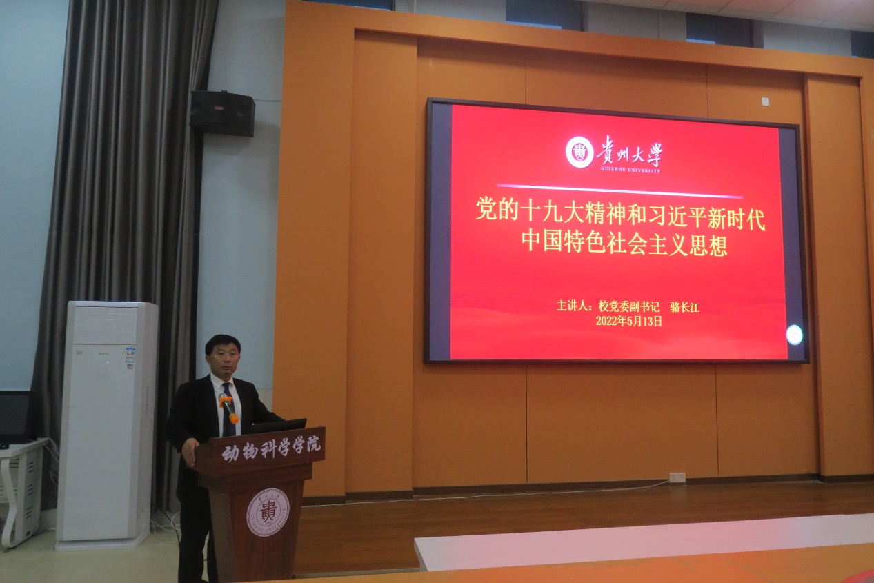 为深入学习贯彻党的十九大精神和习近平新时代中国特色社会主义思想,提升入党积极分子的政治素质、觉悟和理论水平。5月13日19点,校党委副书记骆长江在崇学楼131报告厅为动物科学学院入党积极分子授课,授课内容为《党的十九大精神和习近平新时代中国特色社会主义思想》。学院第三十六期入党积极分子70余人参加培训。