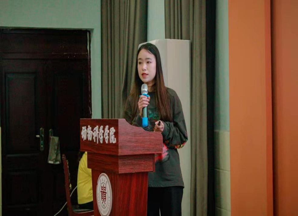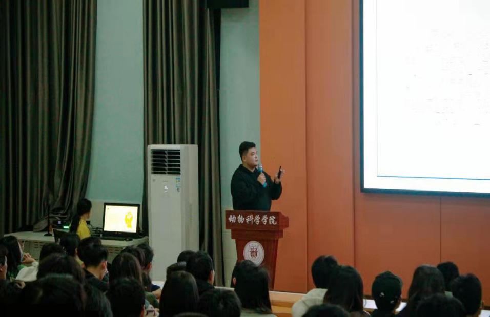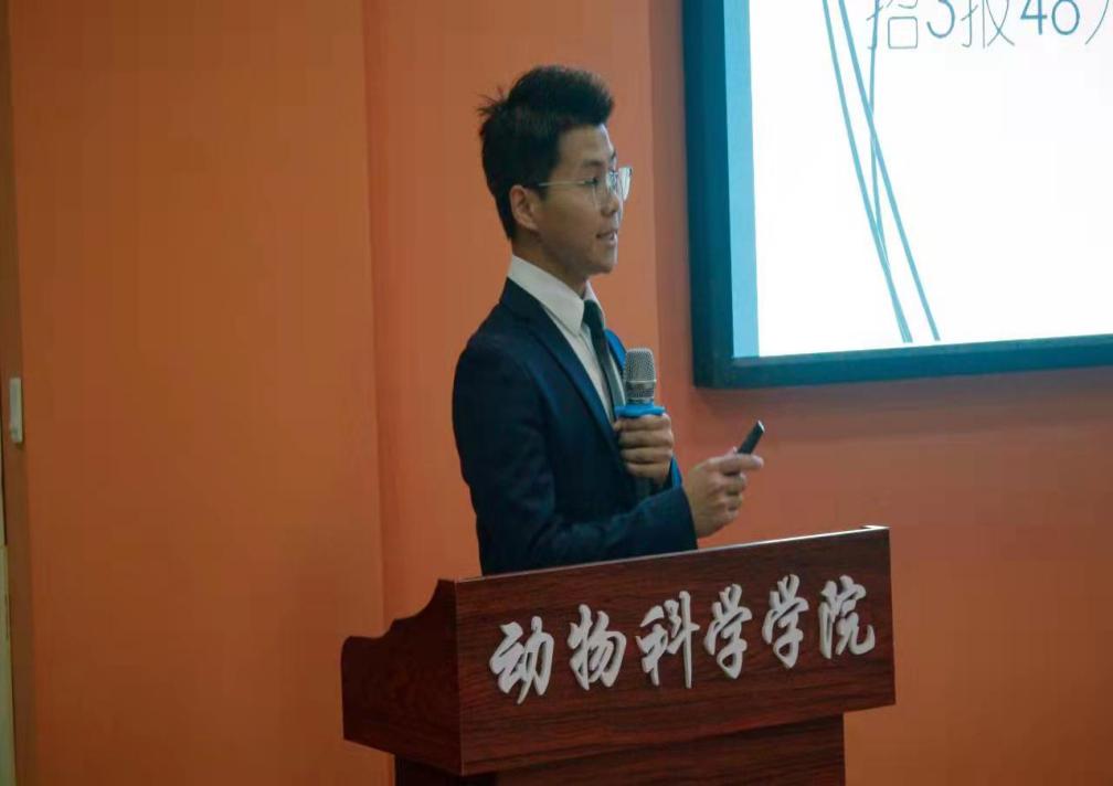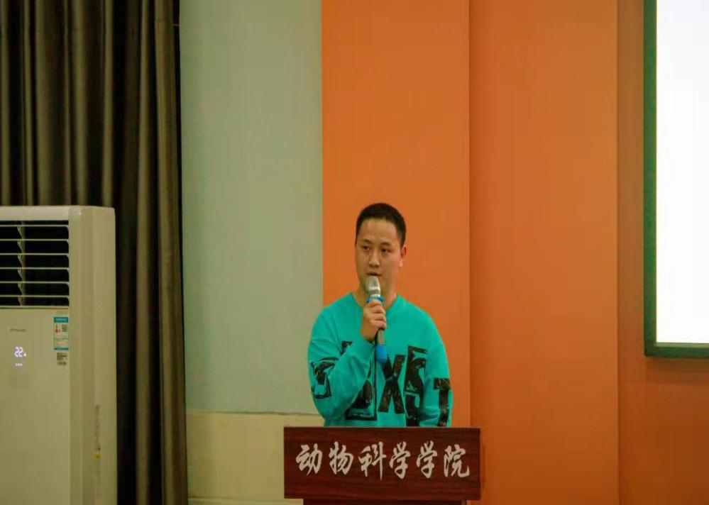 接下来是分享发言环节,2018级动物科学系、动物医学系、草业科学系、水产科学系优秀本科生邢文昊、袁茂莎、洪兴、陆光柔、田星星、杨文珍、罗兴兴7名同学依次在会上进行了升学及就业经验分享。