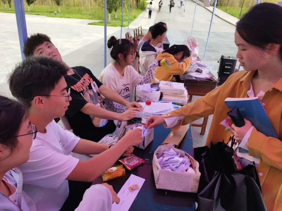 第一种是心理知识问答,参与者从纸箱中随机挑选五个问题交给工作人员随后与工作人员进行问答环节,并记录下参与者的得分情况。