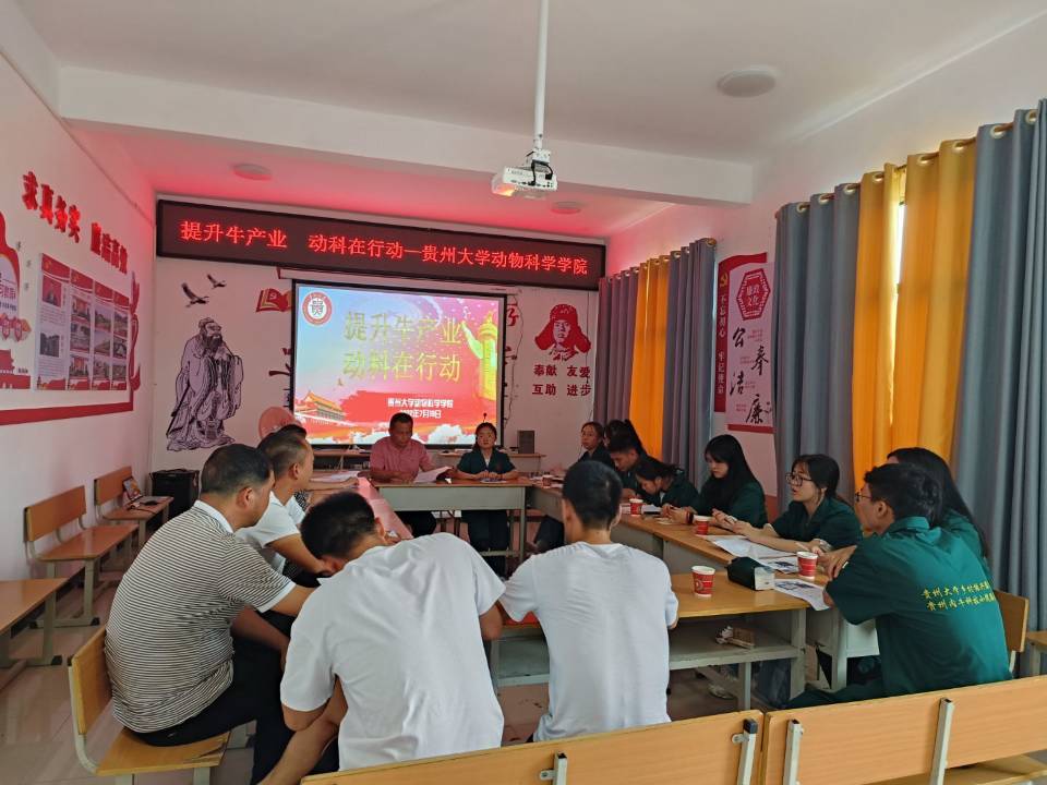 德江队:7月19日下午2点,德江队抵达德江县平原镇。平原镇镇长张丹丹热情地接待了带队的王开功老师和实践队员,并召开座谈会向与会师生详细介绍了平原镇当地肉牛行业的源头、各阶段发展变化及现阶段饲养模式。