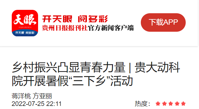 近日,万象城平台(以下简称贵大动科院)组建6支暑期社会实践队,充分发挥养殖技术专业特色优势,组织60余名研究生、本科生赴德江、习水、关岭、兴义等地开展暑期“三下乡”活动。