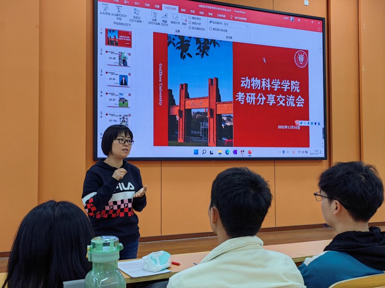 随后,2022级硕士研究生兽医学专业的刘富琴、畜牧学专业的吴燕、草学专业的雷兴成和水产养殖专业的王加品依次上台进行考研经验分享。