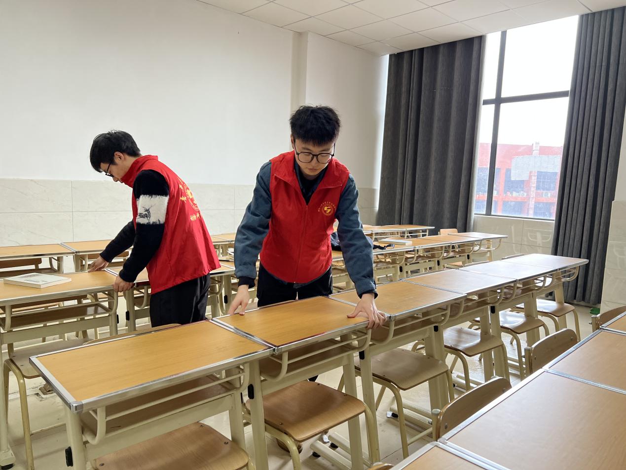 活动当天,我院“靓丽红影”志愿服务队走进教室、走向校园,开展自习室清洁、电动车规整放置等活动,为建设安全、卫生的校园环境尽一份青春之力。