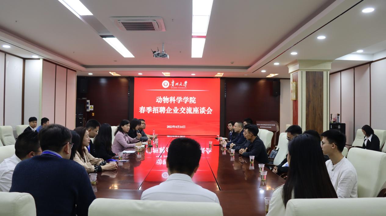 招聘会后,动物科学学院春季招聘企业交流座谈会在崇学楼324会议室召开。会上,罗聃宁代表学院向各用人单位的到来表示欢迎,并向用人单位介绍了学院专业设置及2023届毕业生情况,同时表示,学生就业工作应前置到大二、大三阶段,希望得到企业方的支持,如企业方高管到学院为学生开设职业规划课、在企业建立实习实训基地、创建企业命名班、组织学生到企业现场参观、企业出资赞助各专业技能大赛等形式促进院、企双方的深度合作,提高人才培养质量。贵州温氏行政综合部经理杨志刚表示,此次招聘会给学生和企业提供了一个良好的交流平台,解决了学生就业难、企业招人难的问题。他建议,学院和企业通过支部活动搭建平台,举办形式多样的主题党日活动,与企业共同探索高端人才培养创新模式,培养更多的创新型人才。