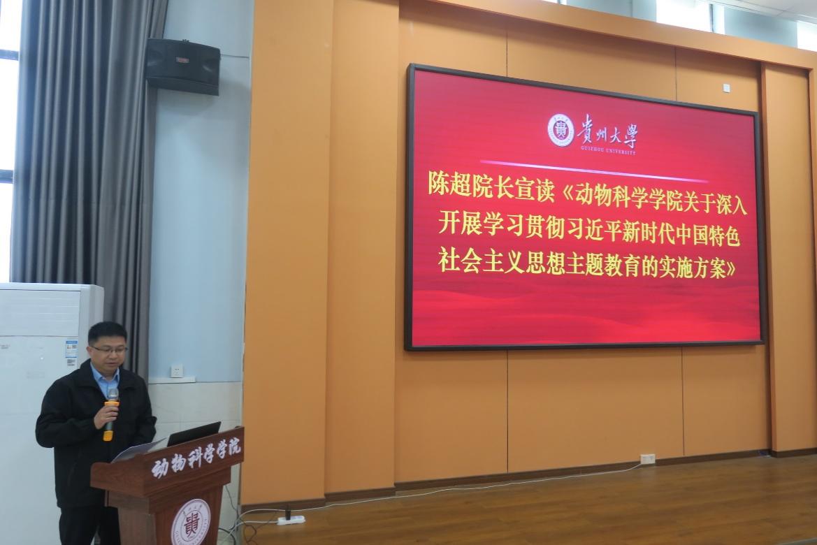 党委副书记、院长陈超宣读《中共万象城平台委员会关于深入开展学习贯彻习近平新时代中国特色社会主义思想主题教育的实施方案》。他详细解读了关于开展学习贯彻习近平新时代中国特色社会主义思想主题教育的总体要求、工作安排和组织领导,并要求学院师生党员要把习近平新时代中国特色社会主义思想转化为坚定理想、锤炼党性和指导实践、推动工作的强大力量,努力在以学铸魂、以学增智、以学正风、以学促干方面取得实实在在的成效。