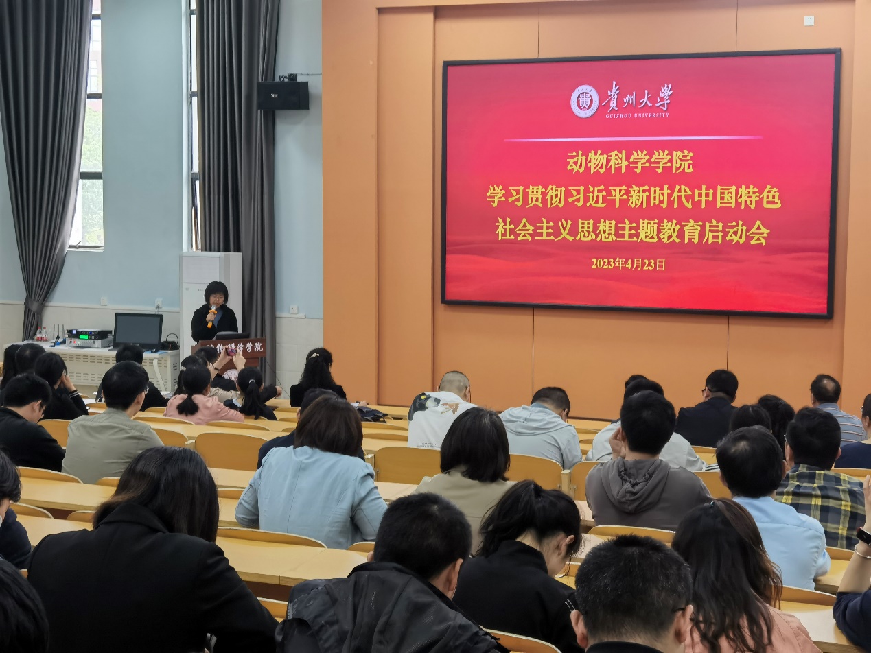 4月23日中午,动物科学学院在崇学楼131报告厅召开学习贯彻习近平新时代中国特色社会主义思想主题教育工作会议,认真学习贯彻中央、省委、校党委学习贯彻习近平新时代中国特色社会主义思想主题教育工作会议精神,安排部署动物科学学院主题教育工作。学院党政领导、全体教工党员、学生党支部支委等90余人参会,党委副书记杨乐主持会议。