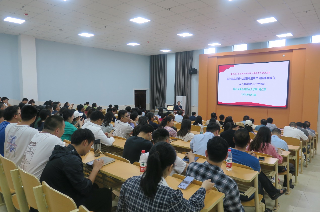 5月5日下午,马克思主义学院杨厚仁教授讲授《以中国式现代化全面推进中华民族伟大复兴——深入学习党的二十大精神》。他从全面推进中华民族伟大复兴的社会历史背景、中国式现代化的五个基本特点、全面建设社会主义现代化未来五年的目标等方面深入解读了党的二十大精神。他指出,深入学习贯彻党的二十大精神,必须牢牢把握新时代新征程的中心任务,深刻领会中国式现代化的中国特色和本质要求,准确把握前进道路上的重大原则,自觉把党中央决策部署贯彻落实到经济社会发展的各领域各方面,担当作为、求真务实,把中国特色社会主义伟大事业不断推向前进。