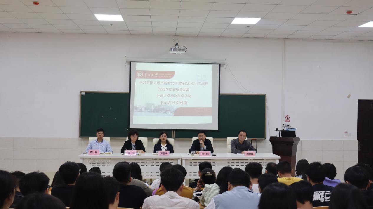为深入学习贯彻习近平新时代中国特色社会主义思想,推动学院高质量发展。5月19日中午,动物科学学院“书记院长面对面”座谈会在崇学楼博学教室举行。院党委书记罗聃宁,院长陈超,院党委副书记杨乐,副院长欧德渊、陈祥出席座谈会,研究生科辅导员及全体研一学生、研二及研三学生代表参加。座谈会由杨乐主持。