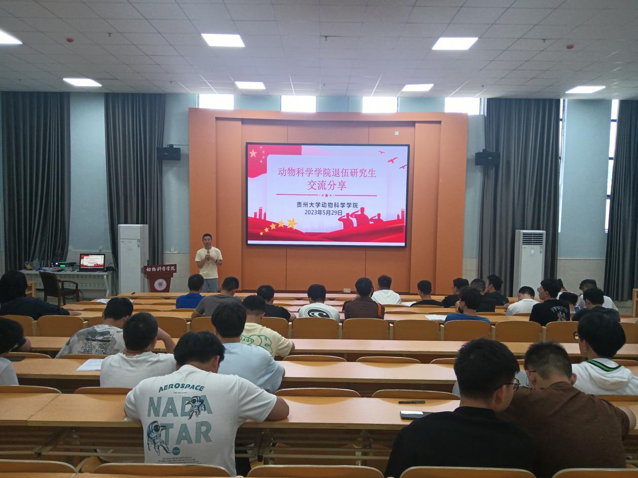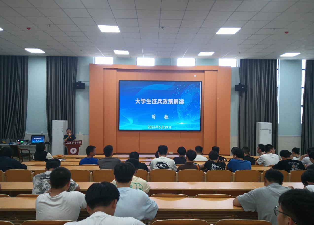 为了鼓励更多优秀动科学子携笔从戎报效祖国,为国防和军队现代化建设贡献力量,5月29日,动物科学学院在崇学楼131报告厅召开了征兵动员会,贵州大学副处级组织员苟敏、学院党委书记罗聃宁作宣讲动员,学院党委副书记杨乐和部分毕业班班主任老师出席,近100名毕业年级适龄男生参加。