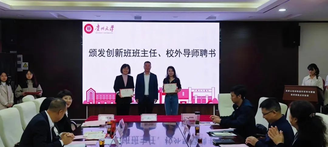 罗聃宁、周英杰分别为雷贤竹、杨乐、蒋洋桃颁发班主任聘书。陈祥为周英杰、陈仲前、李忠超、龙先华、雷贤竹颁发“富之源”创新班校外导师聘书。