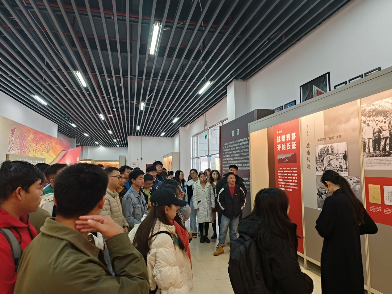 进入展馆,一张张照片、一幕幕场景呈现眼前,无不展现了当时的危机情况。在讲解员的讲解下,同学们不时驻足停留,了解有关情况,聆听红军长征在遵义的革命英雄故事,深刻地感悟了中国共产党的伟大发展历程,感受到革命先辈们留下的历史余温,唤醒了自己的青春热血。