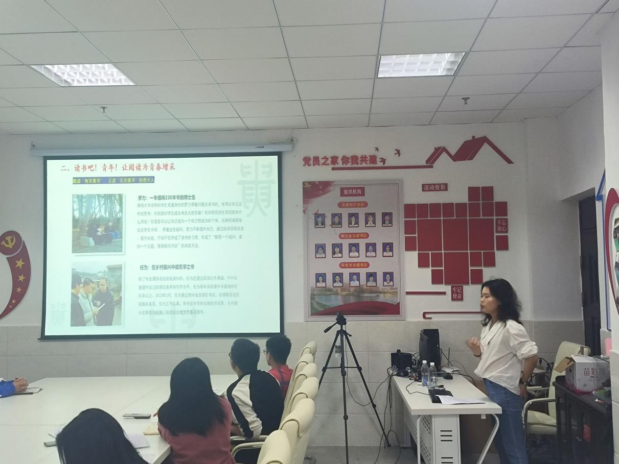 支部书记蒋洋桃首先分享了对《习近平的七年知青岁月》书籍的读后感。她从该书中提炼的青年、学习、人民三个关键词徐徐展开分享,为大家再现了习近平总书记青年时期扎根陕北黄土高原,七年来同人民群众同吃同住同劳动的生动场景。蒋洋桃鼓励同学们要好读书、读好书、善读书,要立志为强国建设而读书,为民族复兴而读书,在祖国大地上躬身践行,让青春在火热的实践中绽放绚丽之花!