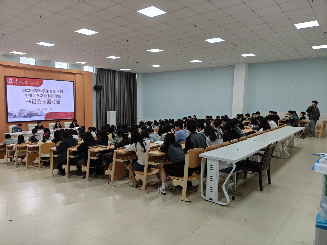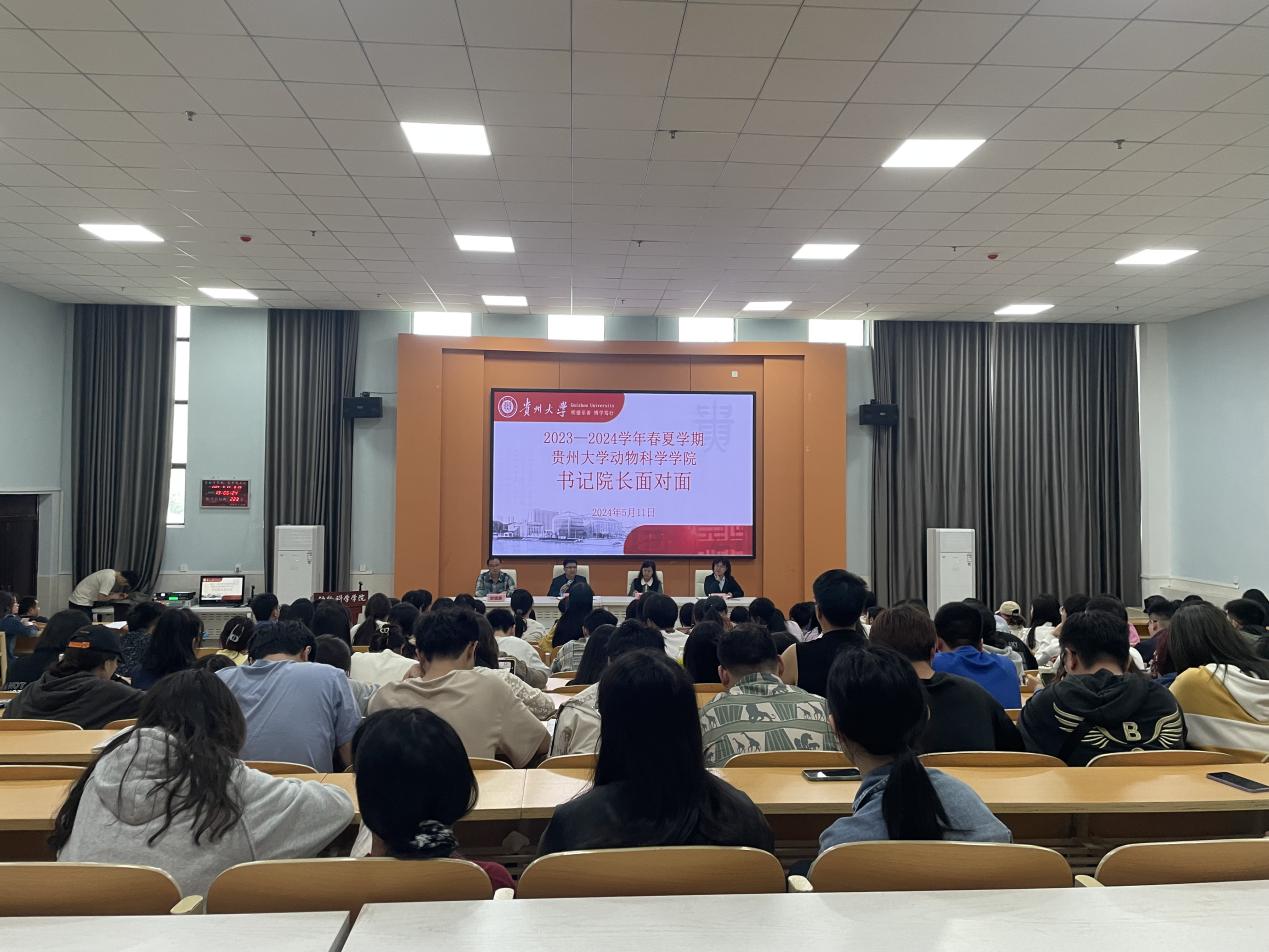 为深入学习贯彻习近平新时代中国特色社会主义思想,真正为群众办实事解难题,助推学院高质量发展,5月11日中午,动物科学学院2023—2024春夏季学期“书记院长面对面”活动在崇学楼131报告厅举行。院党委书记罗聃宁、院长陈超、院党委副书记杨乐、副院长欧德渊、各学科点负责人和教师代表出席座谈会,研究生科老师及全体研一、研二学生参加。座谈会由研究生科辅导员蒋洋桃主持。