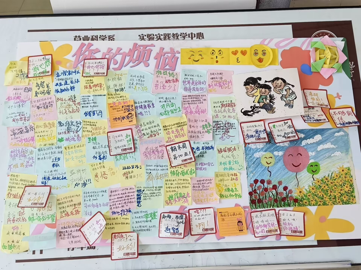 活动结束后,展示板上已经写满了针对各种烦恼的回复。本次活动既鼓励大家勇敢走出内心、向外诉说自己的烦恼与心声,又呼吁更多的人主动倾听他人的烦恼,积极互动。这样互动的方式可以促进同学之间的沟通与交流,有益于同学们心灵成长。