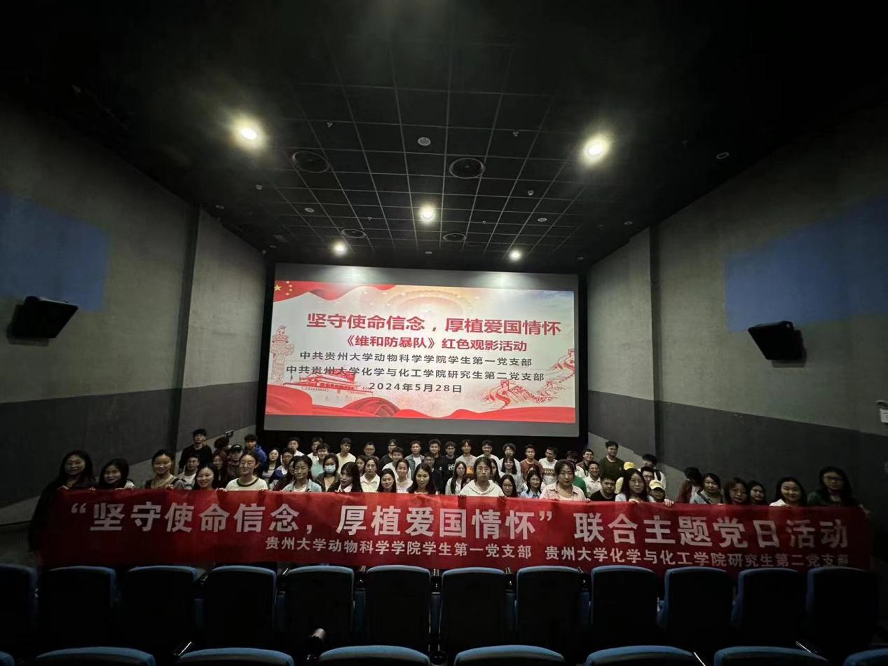 为深入学习贯彻习近平新时代中国特色社会主义思想和党的二十大精神,弘扬党的优良传统和作风,引导党员感悟初心使命、厚植家国情怀。5月28日,动物科学学院学生第一党支部与化学与化工学院研究生第二党支部联合开展红色观影主题党日活动,组织全体党员同志观看爱国影片《维和防暴队》。