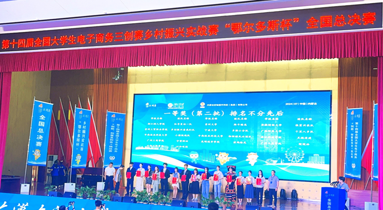 2024年7月27日至29日,第十四届全国大学生电子商务“创新、创意及创业”挑战赛乡村振兴实战赛在内蒙古鄂尔多斯市达拉特旗隆重举行。我校“黔牛臻选”团队在来自全国96所高校的121支参赛队伍中脱颖而出,喜获全国总决赛一等奖。指导老师张勇教授、徐娥教授及企业指导老师陈吉安、邱淦远获“优秀指导老师”称号。