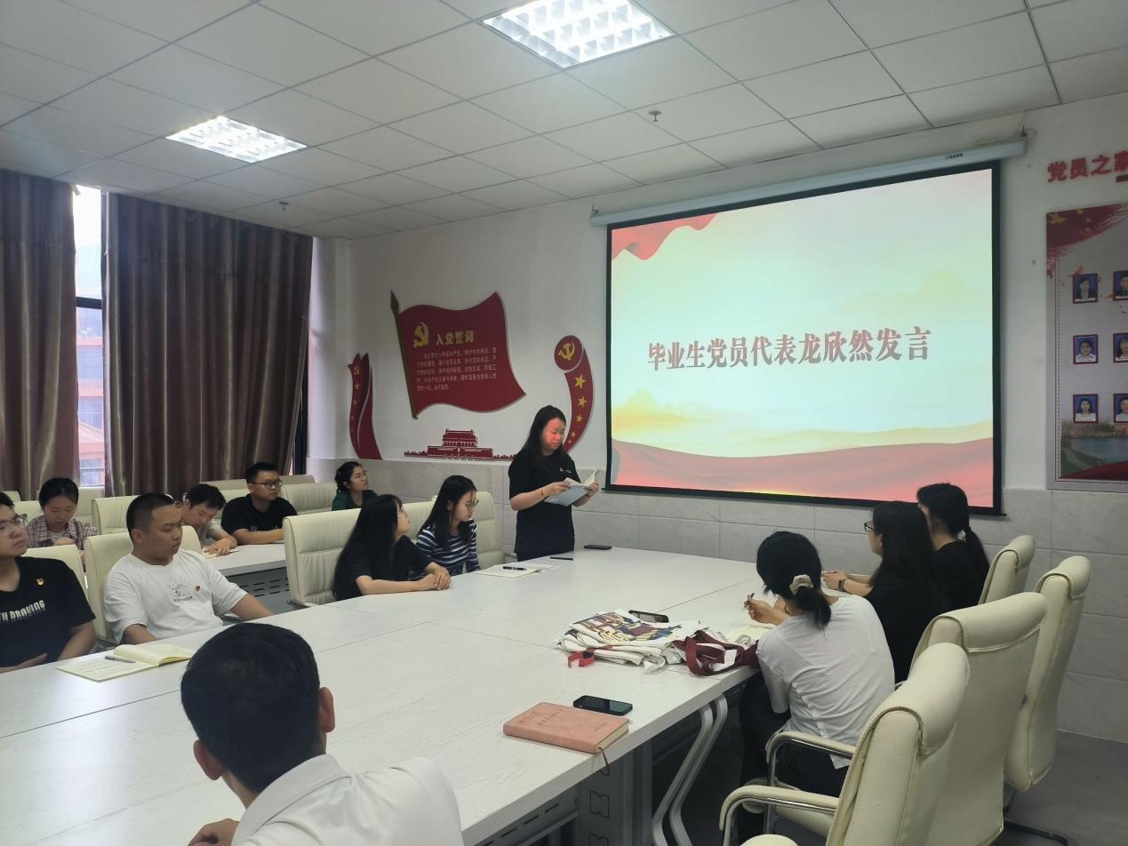 最后,陈祥做总结讲话。他对毕业生党员顺利完成学业表示祝贺,同时要求毕业生党员始终坚守理想信念,不忘初心、牢记使命,不断提高政治素养和政治觉悟,在工作和学习岗位上继续践行党员宗旨,毕业后保持和学院的联系,关注学院的发展动态,常回家看看。