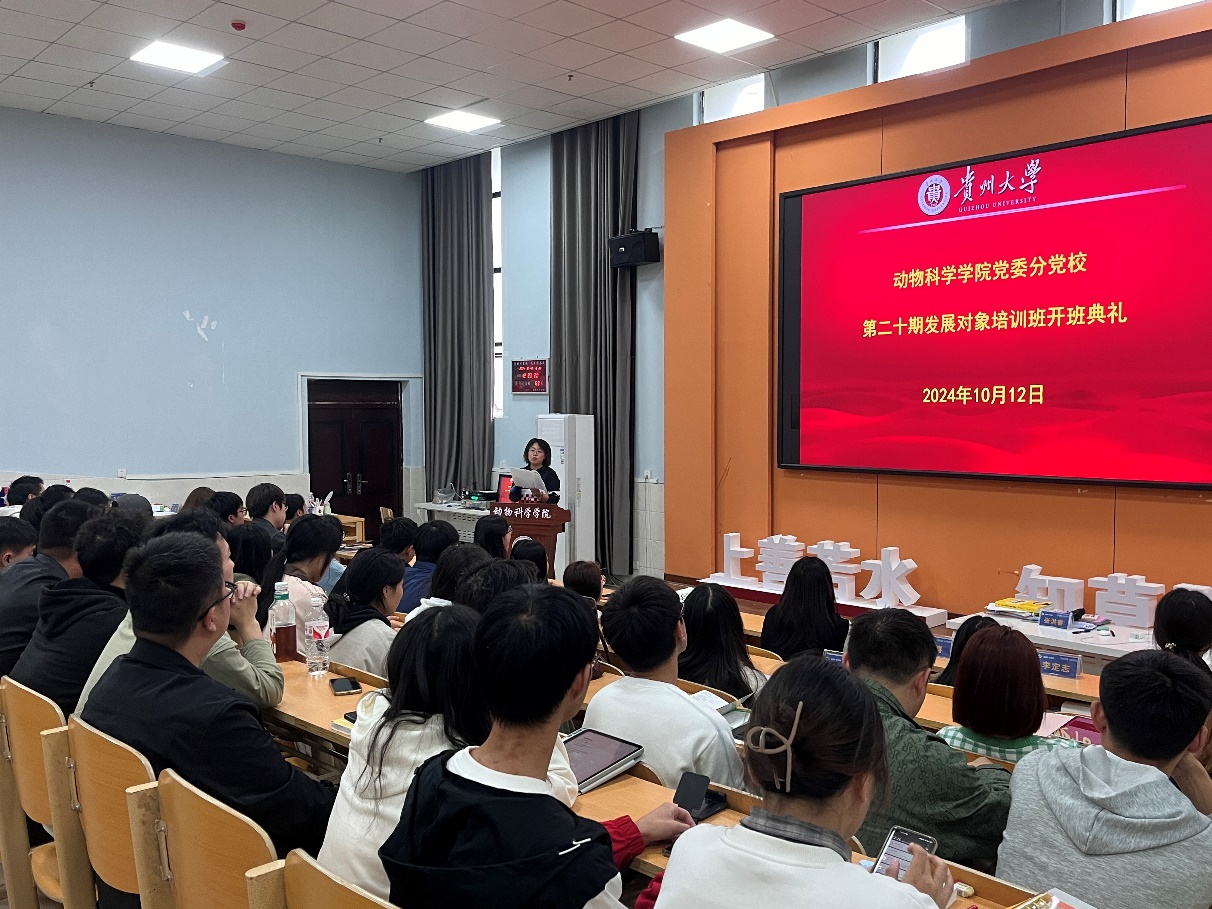 10月12日中午,动物科学学院党委分党校第二十期党员发展对象培训班开班典礼在崇学楼131举行。学院党委书记罗聃宁、党委副书记杨乐及培训班学员50余人参加典礼。典礼由班主任姜敏主持。