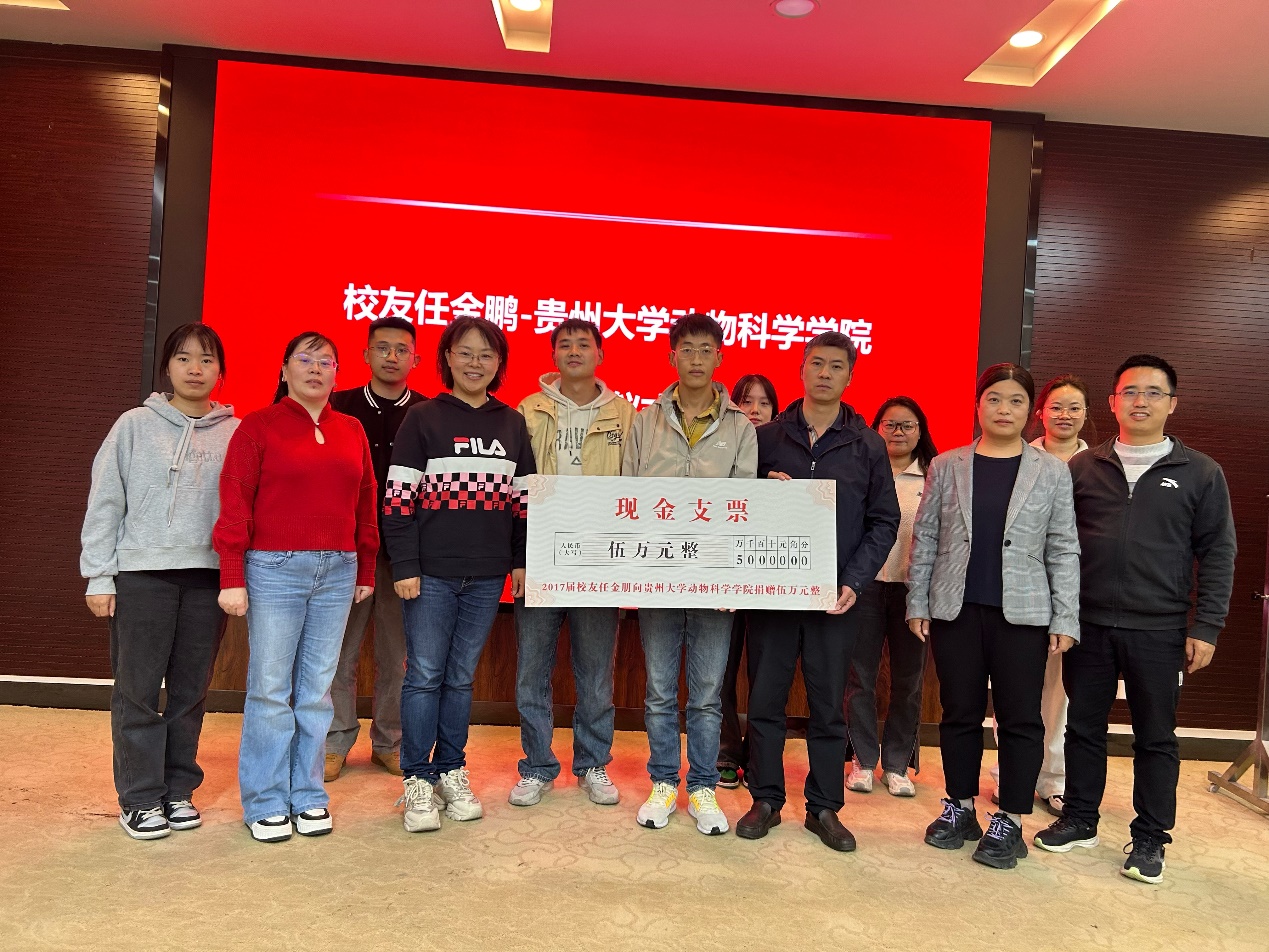 在捐赠仪式上,陈祥对任金朋的捐赠表示感谢,感谢任金朋为学院发展和人才培养等方面给予的大力支持。任金朋对贵州大学的培养表达了感恩之情,希望为动物科学学院人才培养贡献一份力量。