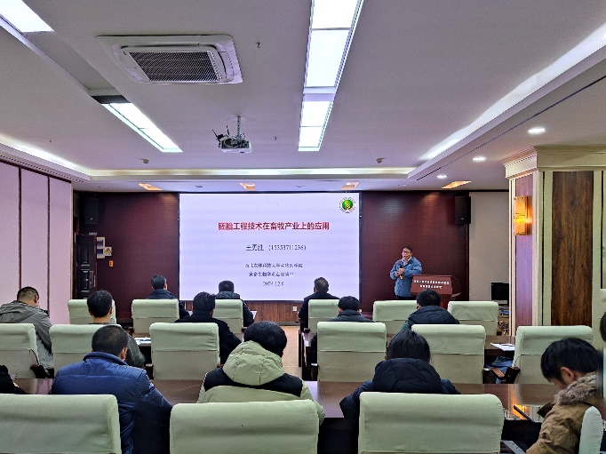 陈祥代表学院对王勇胜的到来表示欢迎,并简要介绍了王勇胜在动物高效繁殖研究方面取得的优异成果。随后,王勇胜围绕我国畜牧产业面临的风险与瓶颈、牛体外胚胎生产、体细胞克隆、基因编辑动物、高端牛核心群构建、胚胎工厂化生产以及其团队取得的成果向参会人员进行了详细介绍。王勇胜表示希望能与我院、贵州黄牛集团,就牛高效繁育及产业化建立紧密合作关系。最后,参会人员就超级奶牛体细胞克隆成本、发展前景等问题积极与王勇胜进行了互动交流。